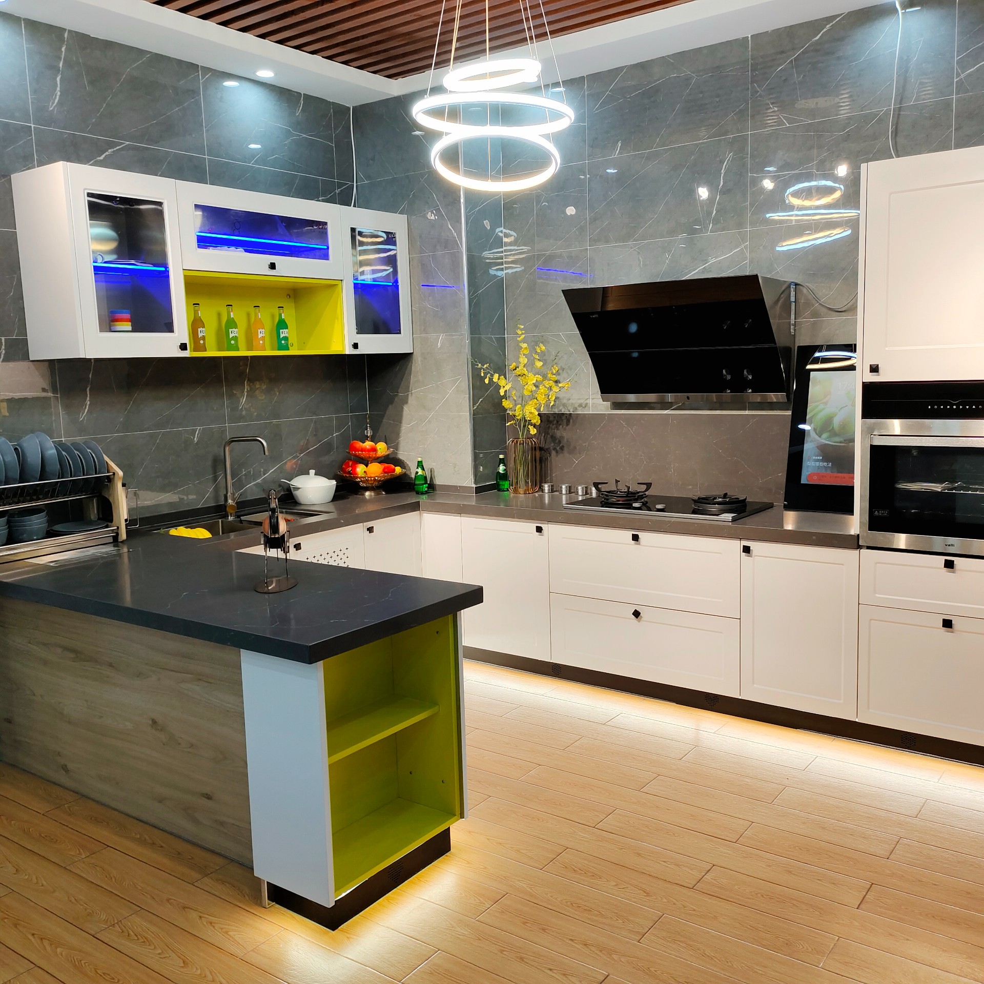這是我們客戶家的櫥柜。門板采用的是市面上一直流行的啞光模壓系列,優(yōu)點是整體效果好,無須封邊,一次成型,防水、耐磨、易擦洗,而且模壓通過門板的造型可設(shè)計出不同的裝修風(fēng)格